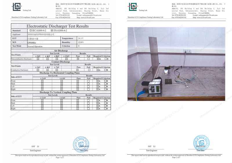 (Remark:The following figure is the static electricity and low temperature test report made by Cyberoce QR code access control)